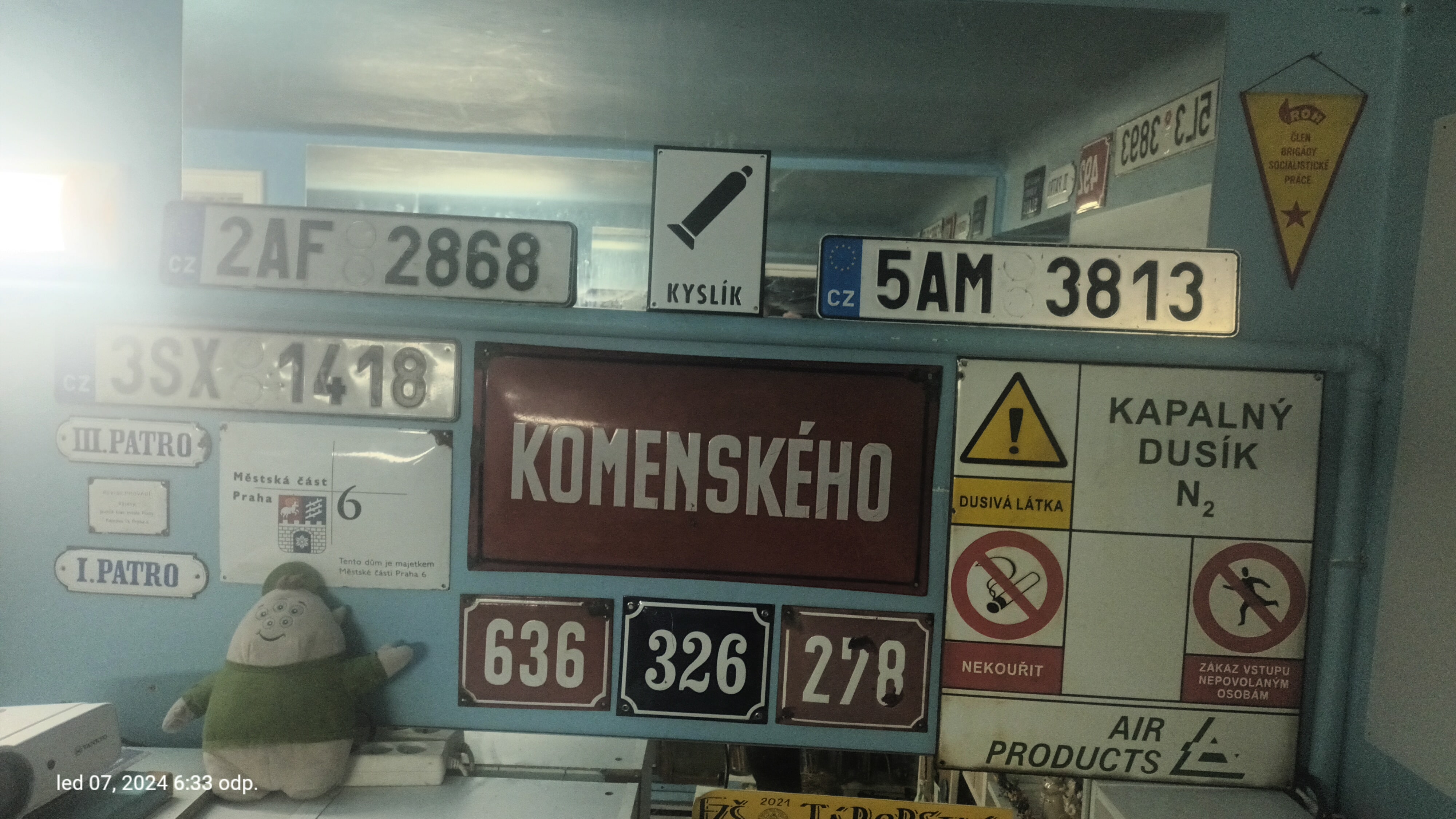 Sbírka různých cedulí - především smaltovaných, 2 dopravní (viz poslední foto).